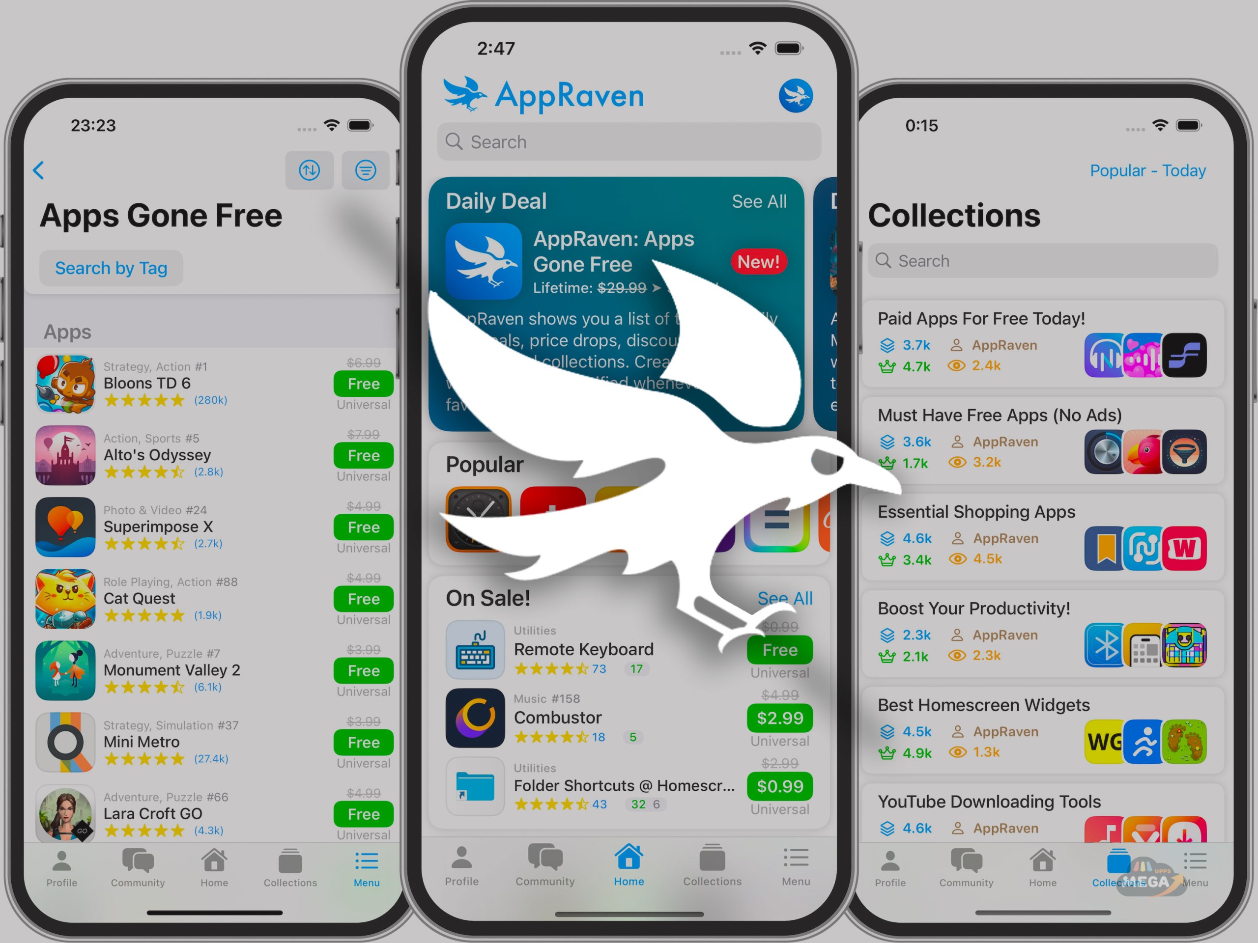 يقدم تطبيق AppRaven: Apps Gone Free تجربة متكاملة تشمل :